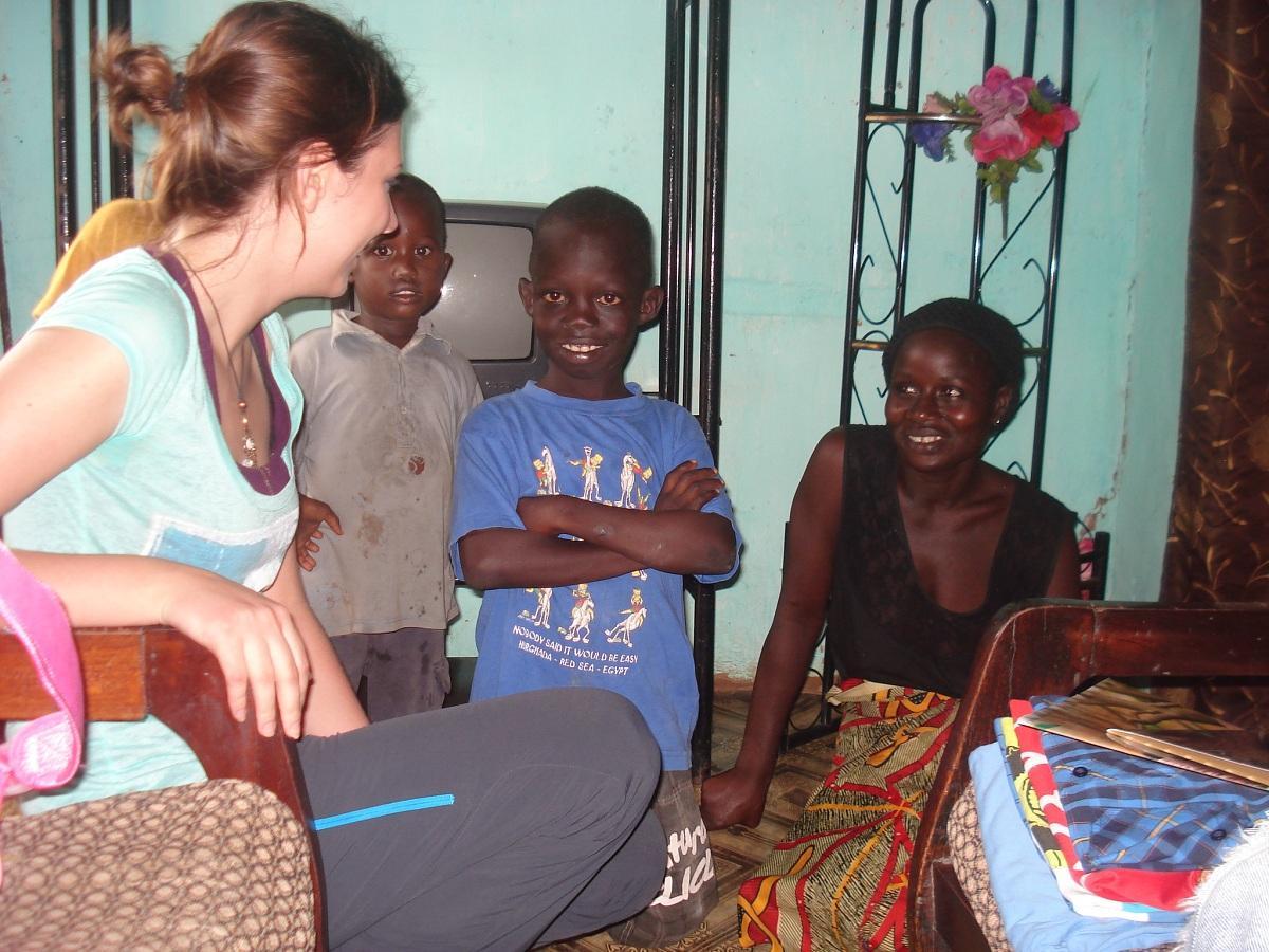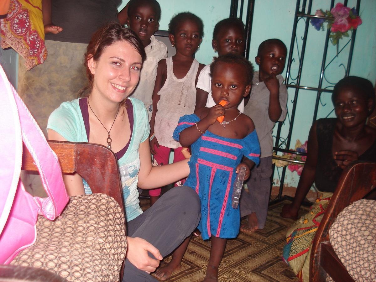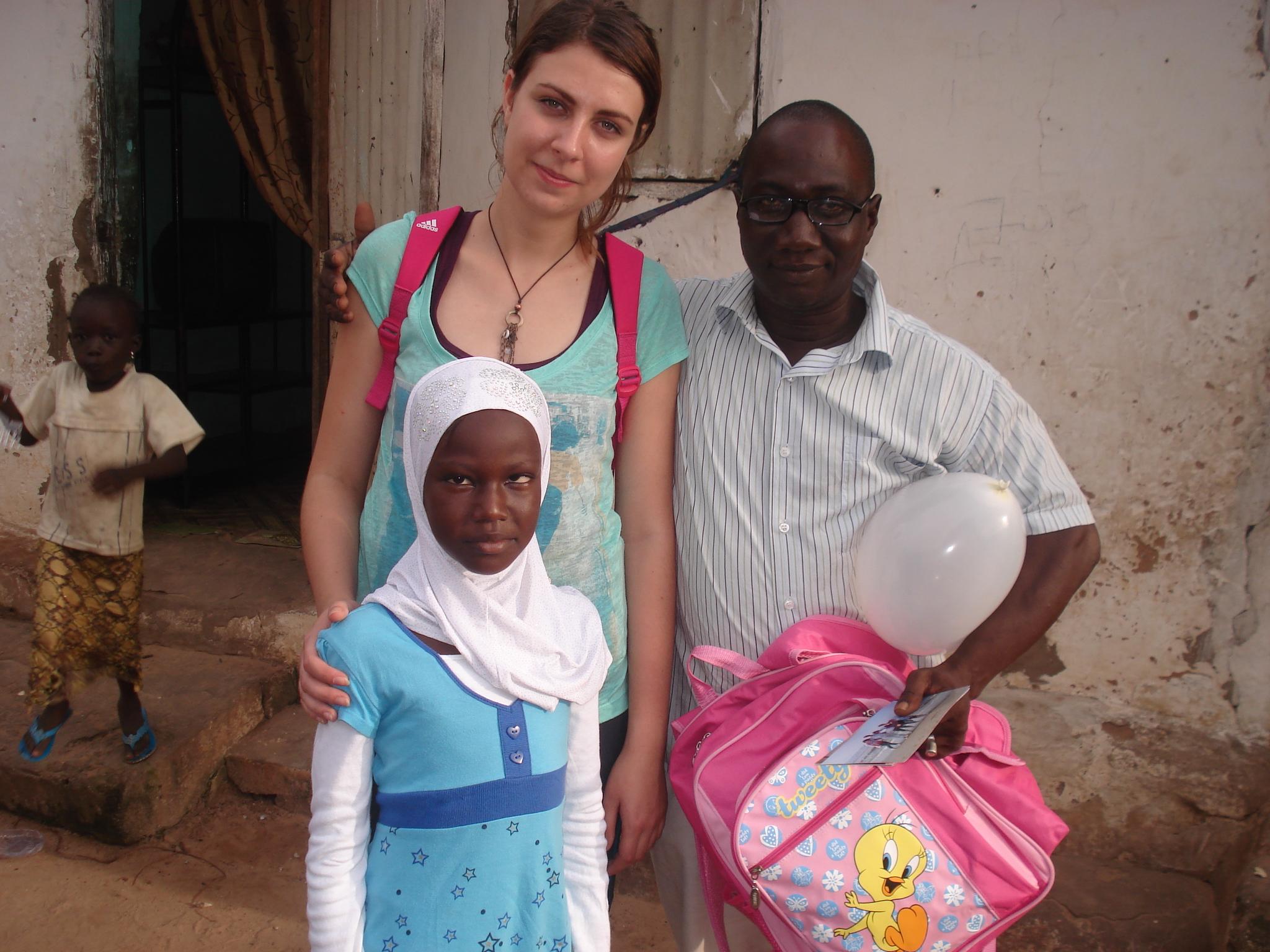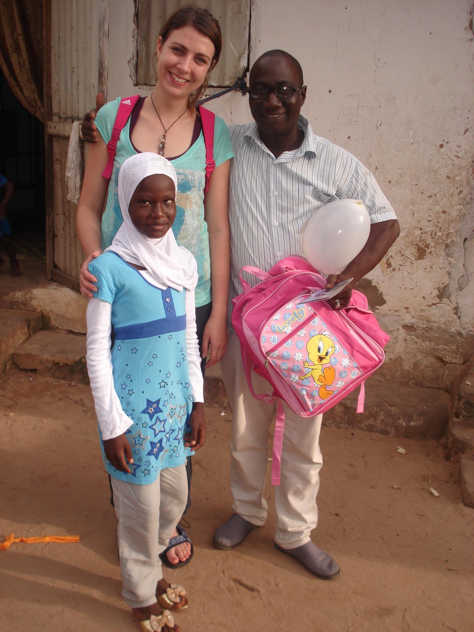 Almedina Ramic, naša nova prostovoljka in botra je nedeljsko popoldne preživela v družbi obeh varovancev, za katera so se odločili, da jima pomagajo vsi družinski člani. Najprej je spoznala Dodouja, ki mu je v resnici ime Muhammed, vendar ga nihče ne kliče po tem imenu. Mama ne govori angleško, zato smo prevajali. Takoj ko smo stopili v hišo, je bilo okoli Almedine ogromno sosedovih otrok, mlajša sestrica in starejši brat. Almedina je dečku izročila novo šolsko torbo, veliko novih oblačil, šolske potrebščine in igrače. Deček ni mogel skriti veselja in se vsakič, ob pogledu na svoje stvari, široko nasmejal. Nikoli še ni dobil takega darila, zato je bilo veselje še toliko večje. Almedina je mami izročila še nekaj denarja. Molitev in besede so Almedino skoraj spravile v jok vendar, se je zadržala, ker ni vedela kako bi si razlagali njene solze.