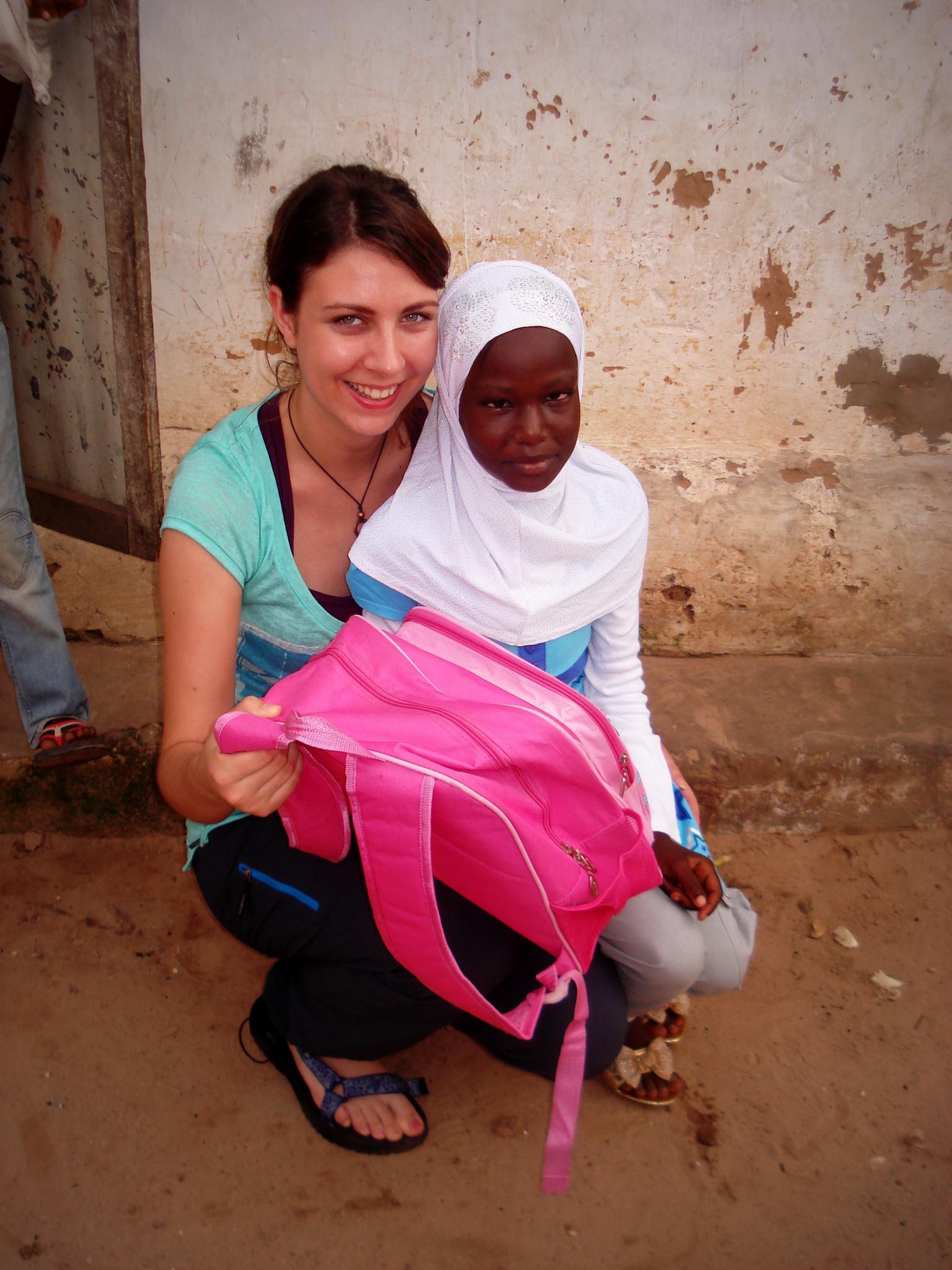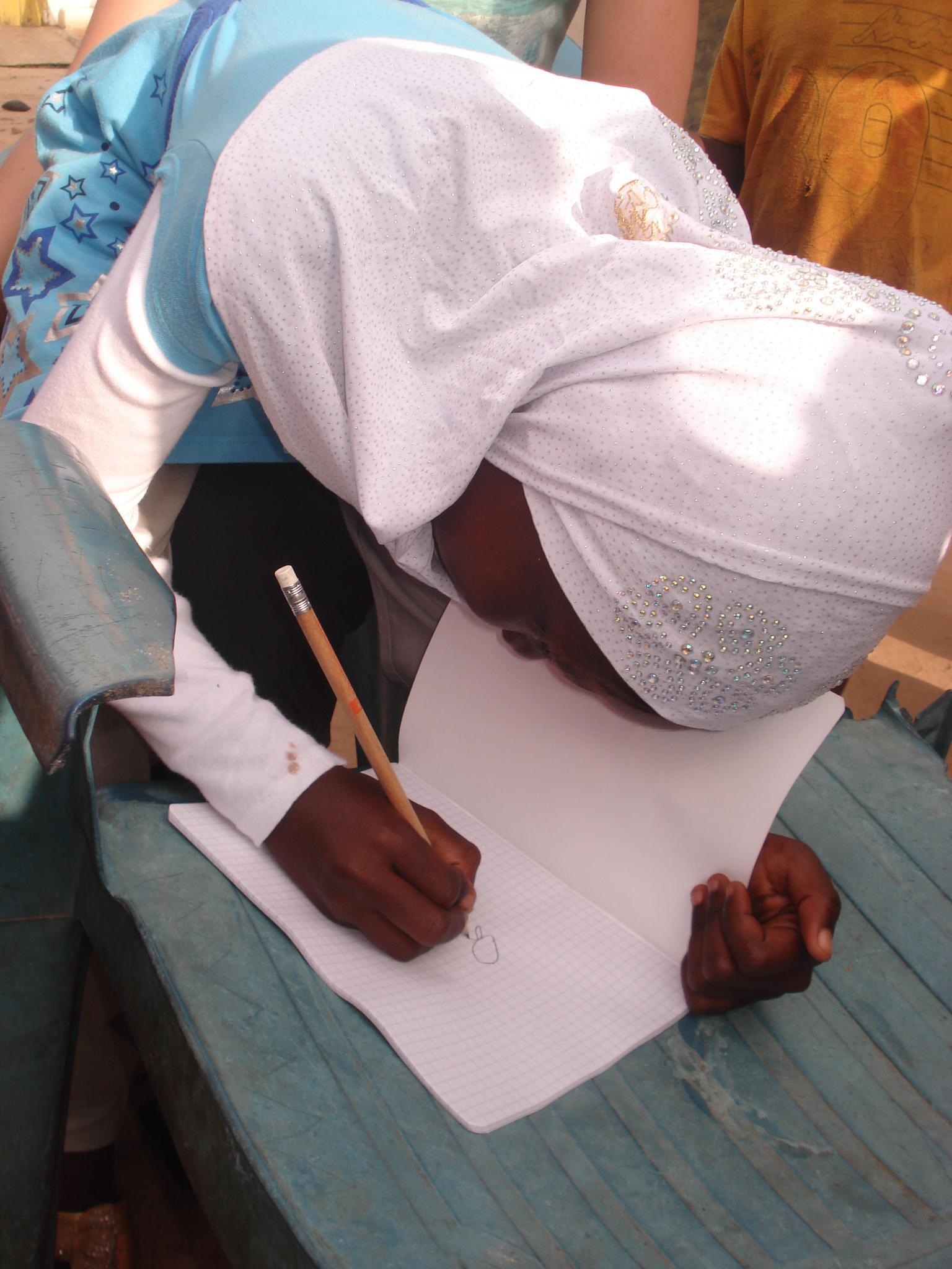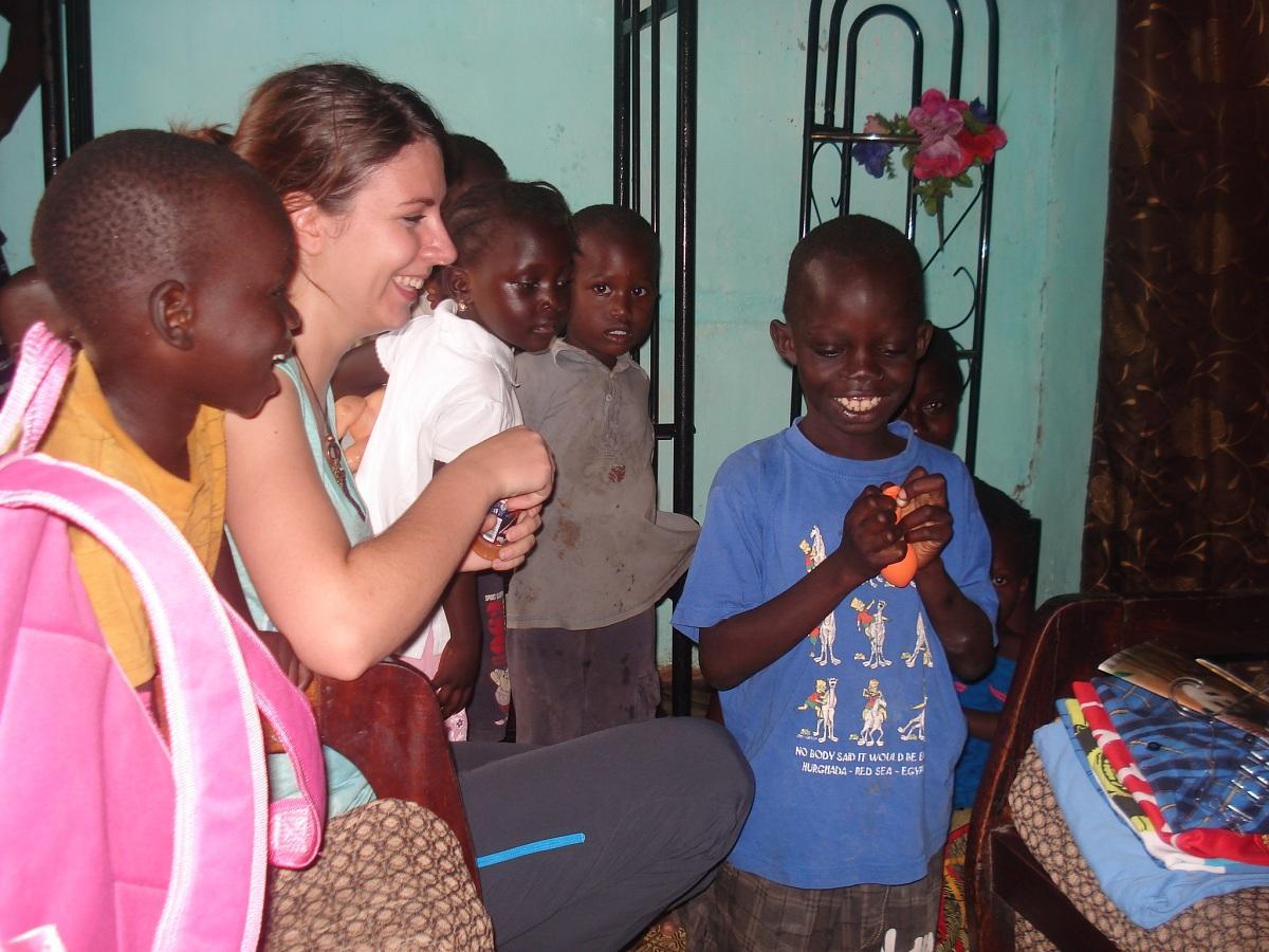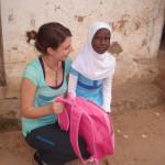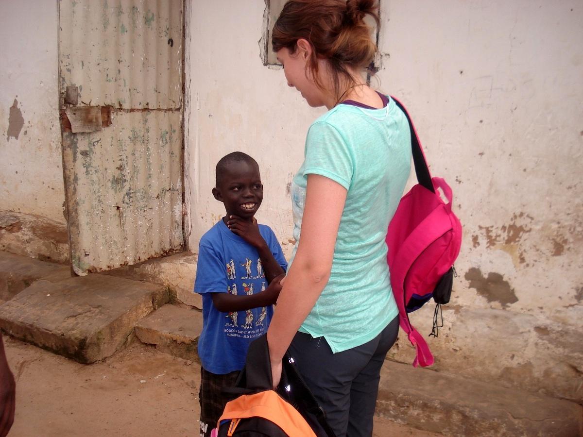 Almedina Ramic, naša nova prostovoljka in botra je nedeljsko popoldne preživela v družbi obeh varovancev, za katera so se odločili, da jima pomagajo vsi družinski člani. Najprej je spoznala Dodouja, ki mu je v resnici ime Muhammed, vendar ga nihče ne kliče po tem imenu. Mama ne govori angleško, zato smo prevajali. Takoj ko smo stopili v hišo, je bilo okoli Almedine ogromno sosedovih otrok, mlajša sestrica in starejši brat. Almedina je dečku izročila novo šolsko torbo, veliko novih oblačil, šolske potrebščine in igrače. Deček ni mogel skriti veselja in se vsakič, ob pogledu na svoje stvari, široko nasmejal. Nikoli še ni dobil takega darila, zato je bilo veselje še toliko večje. Almedina je mami izročila še nekaj denarja. Molitev in besede so Almedino skoraj spravile v jok vendar, se je zadržala, ker ni vedela kako bi si razlagali njene solze.
