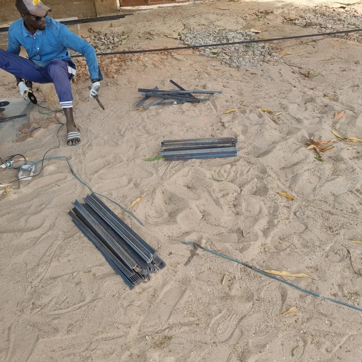 Delo smo začeli z nabavo materiala, ki je bil potreben za izvedbo del. To je vključevalo kovinske nosilce, zaščitno žico, les za opaž ter material za betoniranje. Ko smo zbrali vse potrebno, smo pričeli s pripravo kovinskih nosilcev. Nosilce je bilo treba najprej natančno razrezati, prilagoditi ustrezni dolžini in jih ustrezno pripraviti za nadaljnjo montažo na zid.