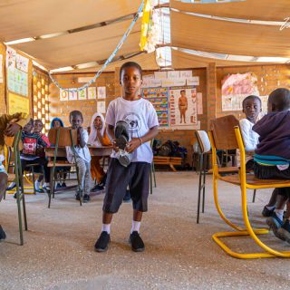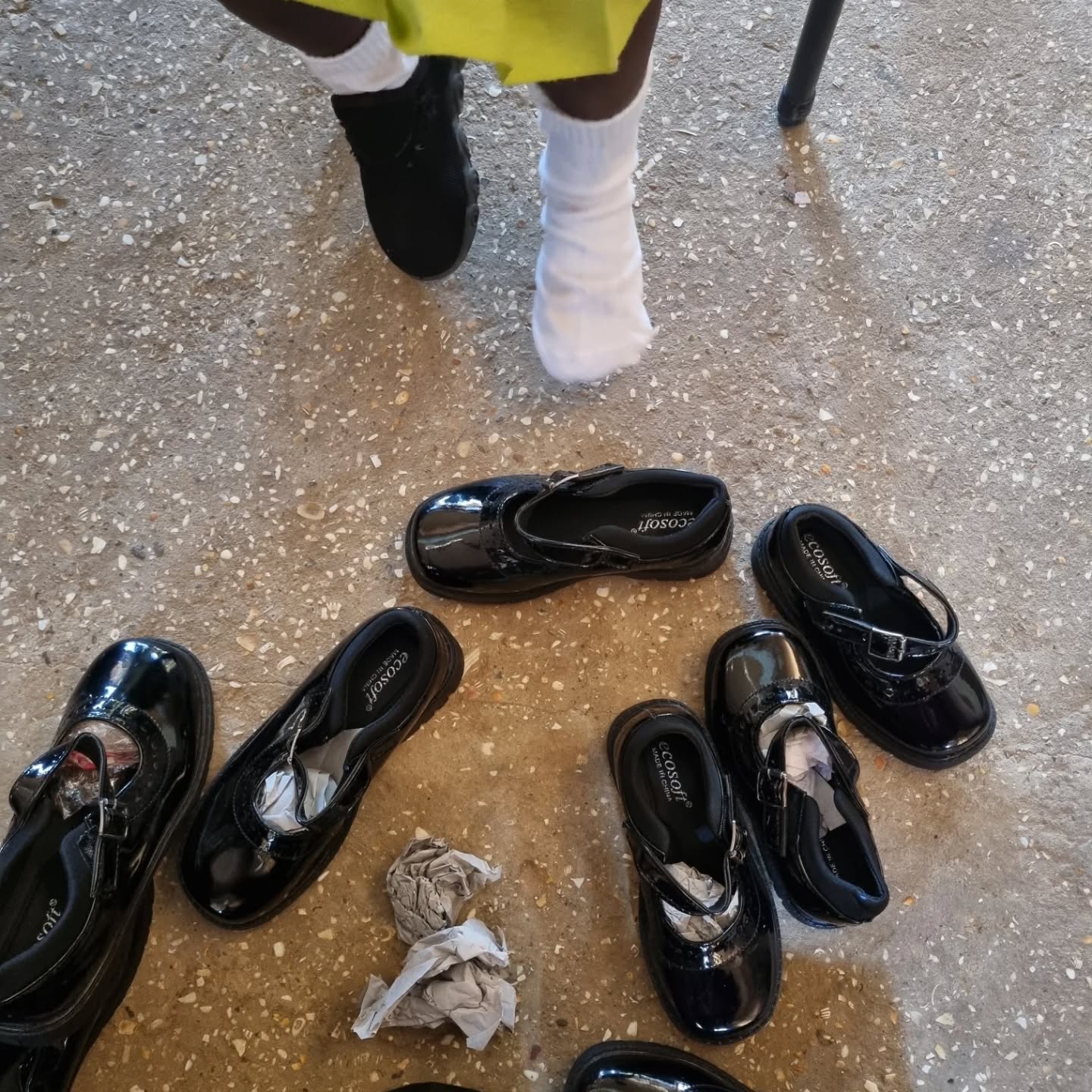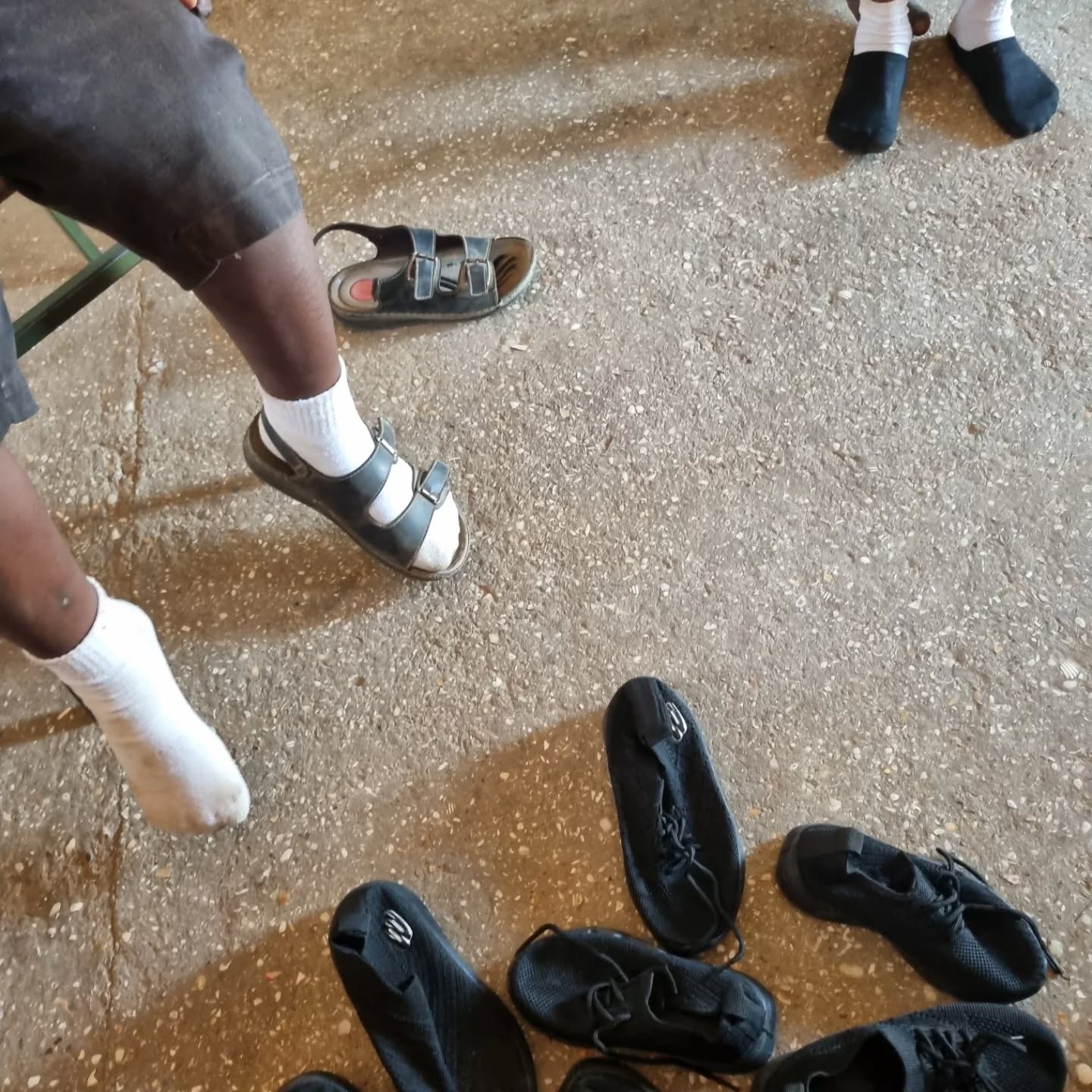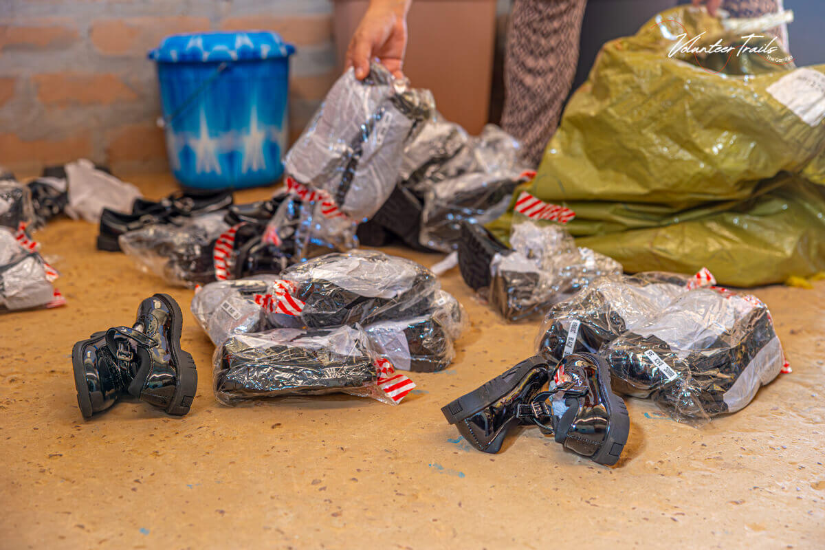 Ko smo zbrali vse velikosti, se je začel drugi del poti – iskanje pravih čevljev. Z dolgim seznamom številk smo se odpravili v Serrekundo, kjer smo iskali prodajalce, ki bi imeli dovolj parov čevljev in modele, ki ustrezajo šolski uniformi. A tudi tukaj stvari ne potekajo vedno tako enostavno. Z nekaterimi prodajalci smo se morali najprej dogovoriti, da nam posodijo vzorčne pare, da jih lahko otroci v vrtcu najprej pomerijo. Le tako smo lahko zares preverili, ali izbrane številke ustrezajo.